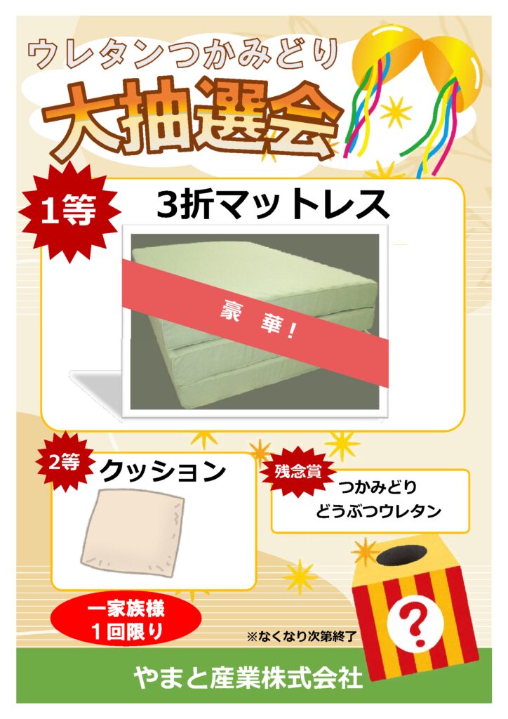 やまと産業は ウレタンつかみどり くじ引き抽選を行います✨